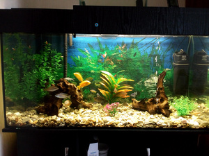 фильтры работают круглосуточно? (выключать их нельзя). чистятся регулярно?Вчера добавил еще две лампы, по 10 Вт светодиодные, итого сейчас 4 лампы общей мощностью 45Вт (10+10+18+7), плюс сделал отражатель на крышке внутри, стало гораздо ярче, планирую уменьшить световой день до 6 часов, постепенно увеличивая продолжительность, недели за две-три доведу до 12 часов! Анциструс есть, но он постоянно под корягой сидит, не выходит, кстати коряги натуральные мангровые. Фильтры работают постоянно, не выключаются, внутренний чистится раз в неделю, вместе с заменой воды, внешний раз в два-три месяца, но мне сказали его надо чистить раз в полгода.