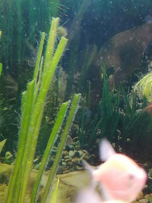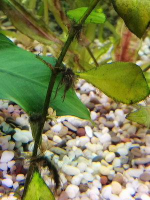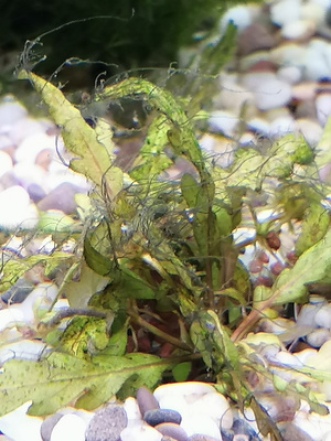 Большая надежда была на анциструсов и отоцинклюсов. Но они к таким откровенно заросшим растениям и не проявляют никакого интереса, скоблят те, что выглядят здоровыми.