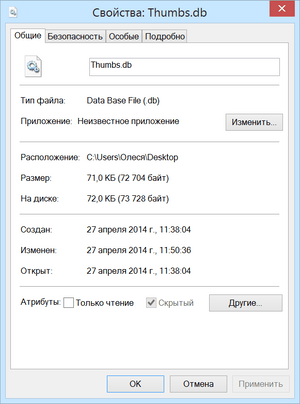 При сохранении одной из этих картинок на рабочем столе, сделанными с помощью стандартной программы "Ножницы", на рабочем столе появился странный файл конфигурации под названием Thumbs.db