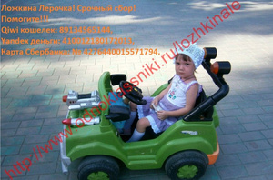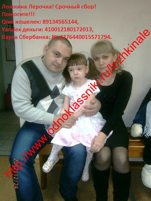 Форумчане! Очень требуется ваша помощь! У моей одноклассницы тяжело болеет дочь! Требуется обследование и серьезная операция, которую могут провести только в Германии. Наши врачи разводят руками и говорят, что российское оборудование не сможет увидеть проблему целиком, и справятся с этим только в Германии, т.к. там оборудование намного мощнее. И там есть клиника, которая специализируется именно на этой проблеме. Обследование и операция очень дорогостоящие, и молодая семья не сможет справится в одиночку!!! Прошу Вас помогите, кто, чем сможет! Каждые 50-100 руб. имеют значение! Вместе мы сила! И мы сможем помочь ребенку ВЫЖИТЬ, и ЖИТЬ ПОЛНОЦЕННО!