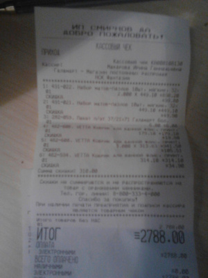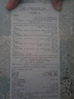 Чек потом к отчету перефотографируйте, пожалуйста.