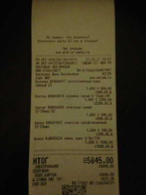 Я новичок на благотворительных форумах, всех правил не знаю. Ни котенка, ни слоненка у меня нет, вещей детских следовательно тоже, поэтому я решил пригласить Евгению 4 октября в магазин, чтобы купить самое необходимое и срочное. Старший ребенок ходит в школу (1 класс), девочка 2 годика - в детский садик. Без одежды под вопросом была и школа, и детский садик. Зимнего завоза еще не было, поэтому некоторая одежда была демисезонная, другая на теплую зиму. За все платил я, поэтому чеки я все выкинул. Откуда я знал, что они пригодятся. В следующий раз буду собирать. Евгения с благодарностью и смущением приняла мой дар и пообещала, что как только дети вырастут из этой одежды, обязательно подключится к нашему благотворительному движению. Не буду скрывать, мне она очень понравилась. Письменный отчет соответствует действительности.