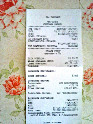 Интернет домашний Новотелеком: 400 руб (чек)