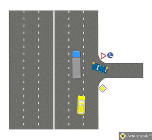 1. Синий подал сигнал поворота.