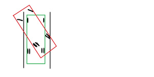 При повороте по малому радиусу (с максимально вывернутыми колесами), задний габарит (задний свес) смещается в сторону противоположную повороту и зачастую выходит за коридор движения ТС.
