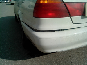 в общем вину свою таксер признал сразу, однако разойтись полюбовно отказался. приехал хозяин конторы и предложил 5 тыр и ни центом больше. при том, что ущерба красить 2 элемента, ремонтировать или менять бампер и вытягивать заднюю планку, что над бампером, к которой замок багажника крепится - она внутрь ушла, багажник не закрывается, у и правое крыло повело, между крылом и фарой зазор в 1 см образовался. это, думаю минимум в 12-15 тыр выйдет.