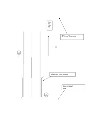 Наверняка многие в курсе, что на трассе M53 на участке Н-ск - Болотное имеется населенный пункт Вороново. Сразу после него есть "мостовое сооружение" перед которым стоит знак "обгон рапрещен" и начинается сплошная разметка. По окончании сооружения расметрка меняется на сплошную-прерывистую (обгон с нашей стороны разрешен) и затем, после достижения знака "обгон запрещен" для встречной полосы разметка становится прерывистой. Через примерно километр обнаруживается машина ГИБДД, забирающая права за обгон, т.к. зона действия знака кончается еще дальше (см. рисунок).