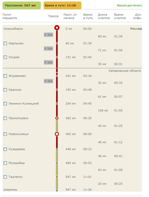 Маршрут Новосибирск - Шерегеш - Усть-Кабырза .