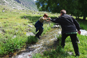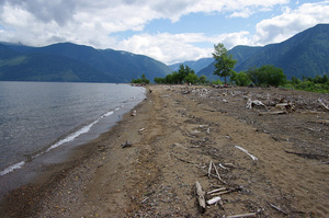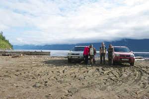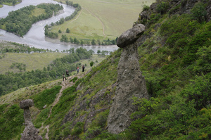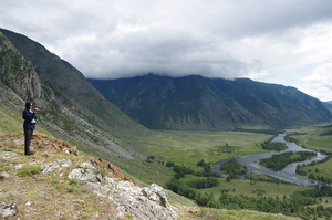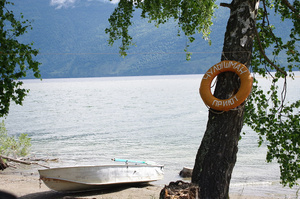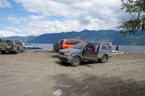 А нам - Наташа, Женя, Юра и я (за кадром) - завтра на двух Х-трэйлах предстоит ехать на южный берег Телецкого озера