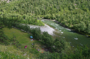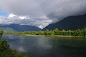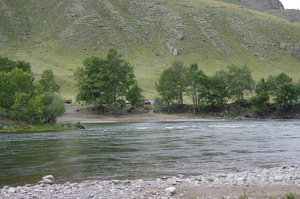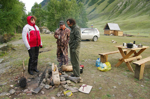 Решили съездить к устью Чебдара. Через 5 км после моста выехали на поляну, где отдыхали водники, закончившие сплав по Башкаусу. Дорога кончилась.