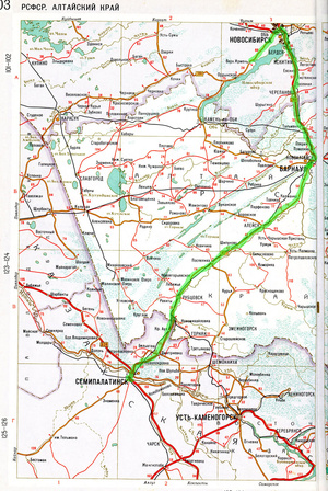 Маршрут прошел по : Новосибирск – Барнаул – Рубцовск – Веселоярск – Семипалатинск – Аягуз – Сарканд – Талды-Курган – Текели.
