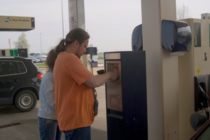 Немецко-австрийская граница в той местности- самая неприметная. Щит стоит в деревне- через 100 м Австрия. Все. Сразу после границы увидел странную картину- очередь на заправке. Подивился, но на следующей заправке понял в чем дело- бензин в Австрии ощутимо дешевле, 1,23 ? против 1,45 ? в Германии. Но я только залил полный бак - не получилось сэкономить. Там же, на заправках и продают виньетки.