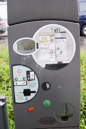 В точке, куда нас вывел GPS никакой гостиницы не оказалось. Припарковались поблизости, отправил девушек на поиски в разные стороны, а сам стал воевать с местной парковочной шайтан-машиной. Кидаю евро - пишет что-то по французски, отдает. Второй пилот нашла гостиницу - оказалось, дом GPS указал правильно, просто вход был с другой улицы. Пошли устраиваться- а возле машины оставил бортпроводника, выдал ей евр и дал вводную - стоять у шайтан-машины с несчастным видом на случай появления полицейских. Вернувшись минут через десять к машине убедился, что вводная выполнялась блестяще. :-) Устроились - кое-как выяснили что парковка до утра бесплатная. Но я всеже кинул два евра - чтобы показать штурману надпись. Так эта шайтан-машина сожрала деньги! И выдала билет- мол, до полудня оплатил парковку. Впрочем, потерял не много- с утра гуляли по городу и вернулись к машине часам к 11.