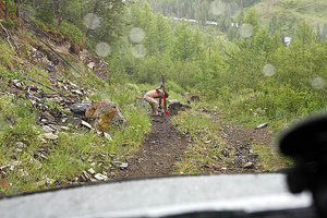 а от Курая до Мажойского моста ваще автомобильная дорога, прям магистраль, едь не хочуНу вот дорога до мажойского моста. На фото мы с неё здоровый камень убираем. На магистраль не очень смахивает. Хотя как посмотреть, конечно.