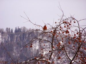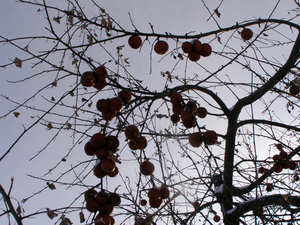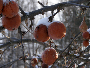 В поселке сохранилось много мороженых яблок, странно почему их не собрали, коровы бродили рядом и жевали те, до которых могли дотянуться…МЫ поступили также…Всю дорогу потом лакомились…Кисло –сладкие , очень вкусные…