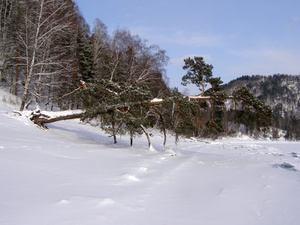 Уже заканчивая прогулку, услышали звук джипа с берега, но увидеть не успели…Через некоторое время встретили на паркетнике мол. человека из Горнно-Алтайска, который подтвердил , что с Артыбаша приехал джип и что, че мы дурью маемся, 60 см лед выдержит танк, что мол он читал, что на Ладоге в войну 40 см лед был, а танки ходили…И, что мол он завтра поедет…Дело было к вечеру…где то пол пятого…Ехать через Бийку по ночи 100 км не хотелось, до Артыбаша по льду было 30….Я сопротивлялась…поскольку и непонятно где какой лед, и какие наледи, и что там со снегом и в одну машину ….ну как то совсем не правильно . Костя настаивал…Местный мужик , глядя на берег, сказал да, вроде ездят УАЗы иногда, а где именно, да бог их знает, ну смотрите мол, решайте сами.