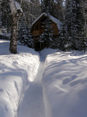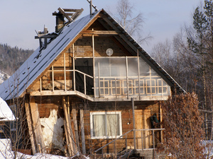 Утро встретило ослепительным солнцем и морозом под тридцать. Машину прогревали пару раз ночью. Утром завелась. В солнце наш приют выглядел как райское место…Тропа на Тилантуу идет тут же , через калитку двора…Утром накормили гречкой с тушенкой орущего кота… Съел 2 взрослых порции и полез целоваться…Потом не удержались и пошли по тропе на Тилантуу, но доверху не дошли, тропа крутовата, обратно по ней туристы съезжали явно на пятой точке и поэтому накатали гладко, подниматься было неудобно и долго, поэтому пофотографировали красоты , померяли глубину снега, провалившись по пояс, побарахтались, вывалялись в снегу ….прикрыли без ключа двери (хозяева даже дом не закрывают, говорят в Артыбаше воровства нет, в отличие от Иогача)….и поехали …По пути решили заглянуть на Юрток , там планировался заезд на снегоходоах на Яйлю. К удивлению, база была пуста. Заехали на территорию, на звук машины вышел Боб, (Борис Михайлович), в прошлом хранитель Каракольских озер, а ныне гид и первопроходец многих сложных и интересных маршрутов. Я была страшна рада увидеть почитаемого мною старого знакомого. Он нам поведал, что за последние пару дней шибко поперла вода и образовалась наледь и два снегохода вмерзли как раз где то в районе Каменного залива, и что надо теперь ехать их вырубать, и что мы правильно сделали , что вернулись. Отчасти по причине наледей отменили тур в Яйлю.