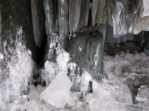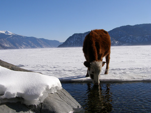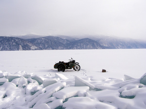 Хотя потом доложил в контору сколько кого приехало. У Визит центра море машин (это кайтеры) Программа в Яйлю сама по себе не отличалась от предыдущей, за исключением поездки по льду. Пешком уже было не очень комфортно ходить, кое где через снег проступала конкретная вода , ботинки мокли, лед хрустел. Гроты ледяные заметно уменьшились и поменяли форму. Видимость в этот раз была идеальной, просматривался мыс и горы южнее, но недолго, ветер поднимал снег с озера.....На льду боролись с ветром пара кайтеров. Снегоходы катали туристов в сторону юга. Экстримальные коровы экстримально шли на водопой исключительно со стороны озера, а не берега, стоя на совсем тонкой кромке льдя. Море дорогой техники (катера и лодки), отттаяло из под снега, даже моторы не сняты. Ждут своего часа. Лед с трещинами. Высокий берег весь оттаял и уже сухой местами с прошлогодней хвоей и листвой. Скоро здесь прснутся клещи. Опять натрясли мороженых яблок, вернее уже не мороженые , а оттаявшие слегка, скорее моченые и еще более вкусные. Обратно нужно было успеть к 7 вечера, ждала баня. По пути нас "поймала "хозяйка одного из домов у озера. Сдают домики на лето . Опять взяли координаты. У машин подошел навеселе мужик, хитро так спросил " А ВЫ знаете , что там на перевале"? Ответили , что ехали пару часов назад сюда. Он сообщил, что полтора часа пробуксовал там, пытаясь выехать с Яйлю и поднятся на перевальчик на 4вд микроавтобусе тойота чтоли и разворотил там все как оказалось по самое нихачу. МЫ не особо испугались, полскольку колеча у него были маленькие...Но мыслт пришла надеть цепи на одну из машин. Но как она пришла, так и ушла почему то. В результате увеиденно зрелище впечатлило. За нами ехало еще 3 машины, одна из которых местная и которая послала за трактором.Дороги прсто не было, а с колеи стаскивала вниз на обочину, ведущую в обрыв..Копка и цепи бы помогли, но ухлопали бы на это часа 2 наверное. В общем пока копались, пришел трактор. Мужик , который нас предупреждал был еще более пьян , потирал руки и страшно радовался что мы застряли..., приговаривая, "ну че не едем , да, стом, да, ха ха. эх ВЫ" , в общем смешно.