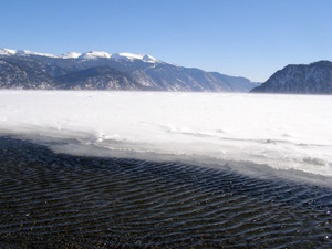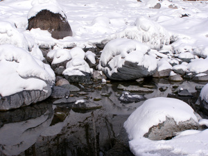 Теплые потоки пробивают лед..это по правому берегу? много ль их, потоков? сколь велики они? далеко ли от яйлю?