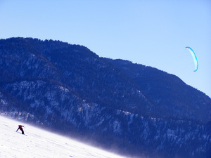 Мы на машинах не полезем на лед. Идея погонять по озеру с кайтами. Думаю, лыжников-то лед выдержит. Да и руководит проектом абориген.