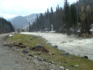 пройдя несколько мостиков и бродов, пытались добраться до того места, которое на карте обозначено как перевал.