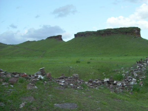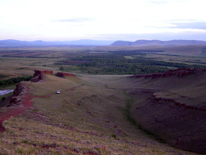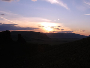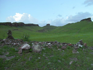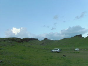 На сам сунддук можно заехать...но дорога так мило идет наверх, доходит до верха и далее как бы должна спускть вниз...вылезли , подошли в краю а так обрыв....Ну и крен оооочень хороший...в общем на высоком транспорте не сказать что спокойно едешь...Впечатлил и звуковой эффект. Видимо это правило амфитеатра, (остатки скал раположены амфитеатром)...Мы стояли друго от друга на 100 местром и говорили почти шепотом...звк был такой как будто человек стоит и говорит рядом...Да и голоса туристов внизу , под сундуком - а это где то с пол-киломатра отчетливо были слышны. НА фото сундук. Правда похож чем то на Ноев ковчег.