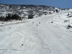 Мы просто поднялись вверх на креселке все посмотрели и поехали вниз, т.к. кататься запланировано не было - ни времени ни шмота. Хотя на следующий первомай я бросаю всё и еду именно суда на пару дней - бомбить гору.