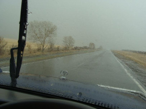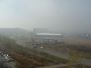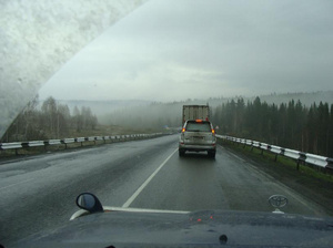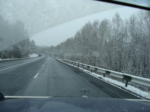 За Кемеровскими горками начинается то туман, то снег, то дождь.