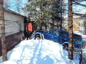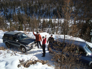 А наледи представляли чисто техническую трудность. Без цепей сурфам тяжело было на них, а на цепях спокойно проезжали. Джимнику цепи не понадобились.