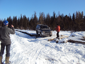 И в одного оттуда никак. Зилком дернули, а следы его мы везде видели - бридж айскрузер с цепями на передке.