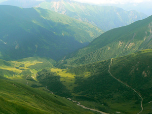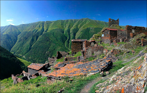Третьей точкой маршрута будет высокогорный район Тушети , с селом Омало. Основная массу туристов туда забрасывают вертолётом. Мы же туда попадём через перевал Абано (2926 м.), открывающийся только летом.