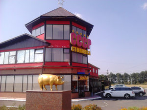 За Уманью пообедали в ресторане со звучным названием "Сало". Рядом "Столовка СССР". Пока кушал, на стоянку подъехали четыре жигуля с украинскими и еще какими-то флажками на машинах. Бросил обед, подошел, познакомился. Оказалось, это команда автоклуба из Вильнюса, держат путь в Крым. Простые ребята, поговорили с удовольствием, рассказал им про нашу Сибирь, пригласил в гости.