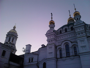 Вечерний Киев великолепен, но весьма суетлив. Погуляли по Крещатику и Киево-Печерской Лавре.