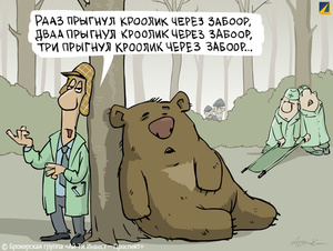 Туристы в обморок,а медведь убегает довольный,теперь до конца дня у него хорошее настроение