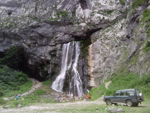 Поскольку выехали поздновато, то все попсовые места как то девичьи слезы, мужские слезы, голубое озеро и юпшарские ворота проехали без остановок. Даже сначала проскочили поворот на Гегский водопад, так что пришлось разворачиваться. Дорога на водопад абсолютно проезжаема для стокового УАЗа, поэтому для Дискавери тоже не возникло никакой проблемы туда заехать. Тем более с понижайкой. Я даже больше скажу, я бы туда даже на форике бы поперся. Конечно ехать бы пришлось гораздо аккуратнее, но в итоге я уверен все бы получилось. Про водопад рассказывать не буду, выложу фото.