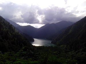 На следующий день поехали в Рицинский парк, проверять кто там и куда нас не пустит. Я конечно не так уж и много чего видел в Абхазии, но Рицинский Национальный парк это нечто. Если вам нравятся горы, водопады реки, то туда надо съездить обязательно и лучше на несколько дней. Въезд в парк платный, 350р взрослый, 100р ребенок.