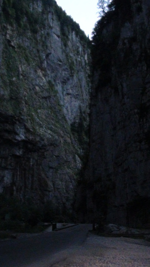 На лугах ничего особо интересного, да и дело к вечеру уже, поэтому дальше в горы не полезли. На обратном пути на другой стороне ущелья увидели прикольный, очень высокий водопад. Юпшарские ворота проезжали уже затемно. В отличие от утра вообще ни души не было