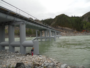Через Элекмонар восстановили 8 мостов у недостроенного 9ого моста(если считать от поселка) слева и справа броды, один подлиннее но мелкий, второй короткий но глубже, я проходил по темноте глубокий, вода зашла в салон, капот был полностью под водой, нива всплыла и меня развернуло против течения, но потом поставила на камни и я выехал, семья в салоне однако страху натерпелись