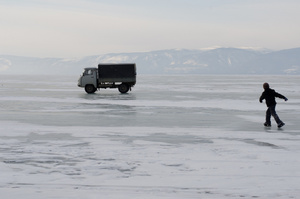 Отклонение от дороги смертельно опасно. До 10 машин каждую зиму уходит под лед на Байкале.