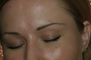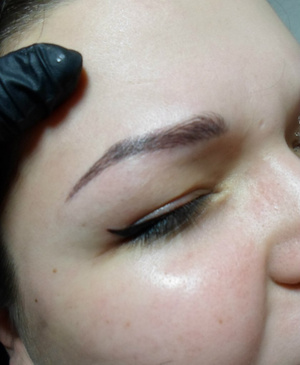 я хотела волосковую технику, но Марина сказала, чтоу меня слишком пористая кожа и через какое-то время "волоски" поплывут, станут потолще и будут заметны на фоне родных, поэтому применили растушёвку.