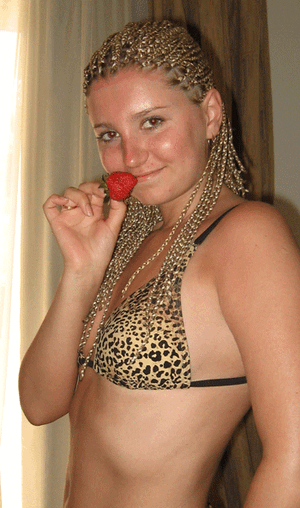 И есть вот еще.... верхняя полоска лба причем сгорела на солнце после того, как косы заплели