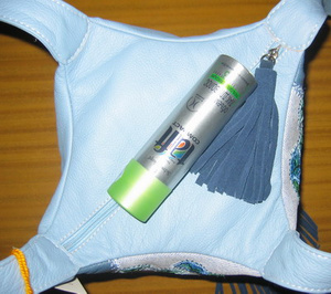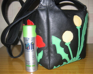 Эта же сумка, рядом маленький флакон лака для волос (100 мл) для масштаба.