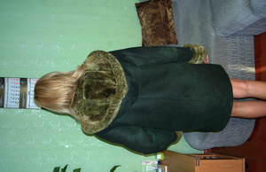 Дубленка темно-зеленый цвет, прямая модель на молнии, с капюшоном, р-р 44-46, на любую длину рукава, очень мягкая и теплая