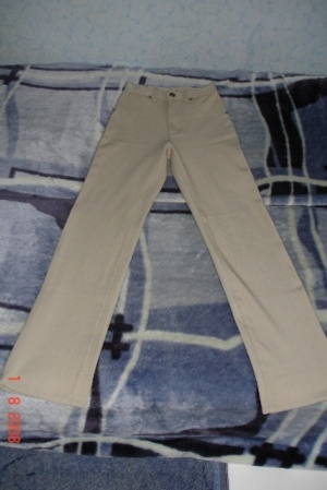 Бежевые: марка Braxton, посадка на талии, р-р 40-42 (маркировка - 25). Тянутся, как будто "резиновые", 95% поливискоза, 5% лайкра. Зауженные книзу. Аккуратно подшиты на рост около 158 см.