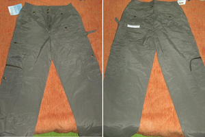 Новые брюки-карго пр-ва Германия, 70% хлопок 30% нейлон, внизу модно собираются на кулиску, много карманов на кнопках и на молниях, талия довольно высокая, на молнии и кнопках. Сзади карманы на кнопках. На высокий рост от 172 см. Р-р 48