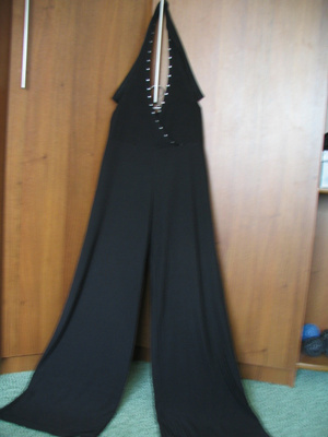 трикотажный комбинезон. р-р 42-44, широкие брючины, верх на завязках, на груди отделка стразами. 400 рэ