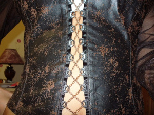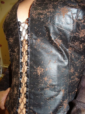 рубашка. перед и манжеты сделаны под кожу ,рукава и спина прозрачные, вместо пуговиц цепочка р-р 40.
