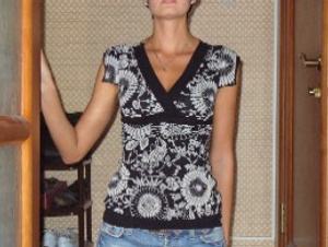 кофтоточка . трикотаж перед и спина полупрзрачные ,отделка под грудью похожа на плюш переходит в бант на спине. усыпана вся прозрачными паетками. р-р 38, рост 170-175 цена 500 руб