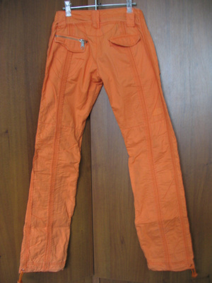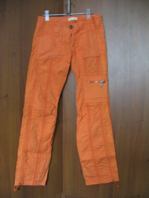 еще одни креативные брюки. Депо джинс, цвет апельсин, р-р 42, на бедрах. Застежка пуговицы. Отстрочки, накладные карманы. На фото цвет чуть тускнее, чем в натуре. 400 рэ
