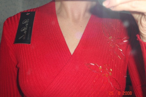 Кофточка красная. Трикотаж, стрейч. Новая. Бисер при желании легко отпарывается. Совершенно точно растягивается на размеры 40-42-44.